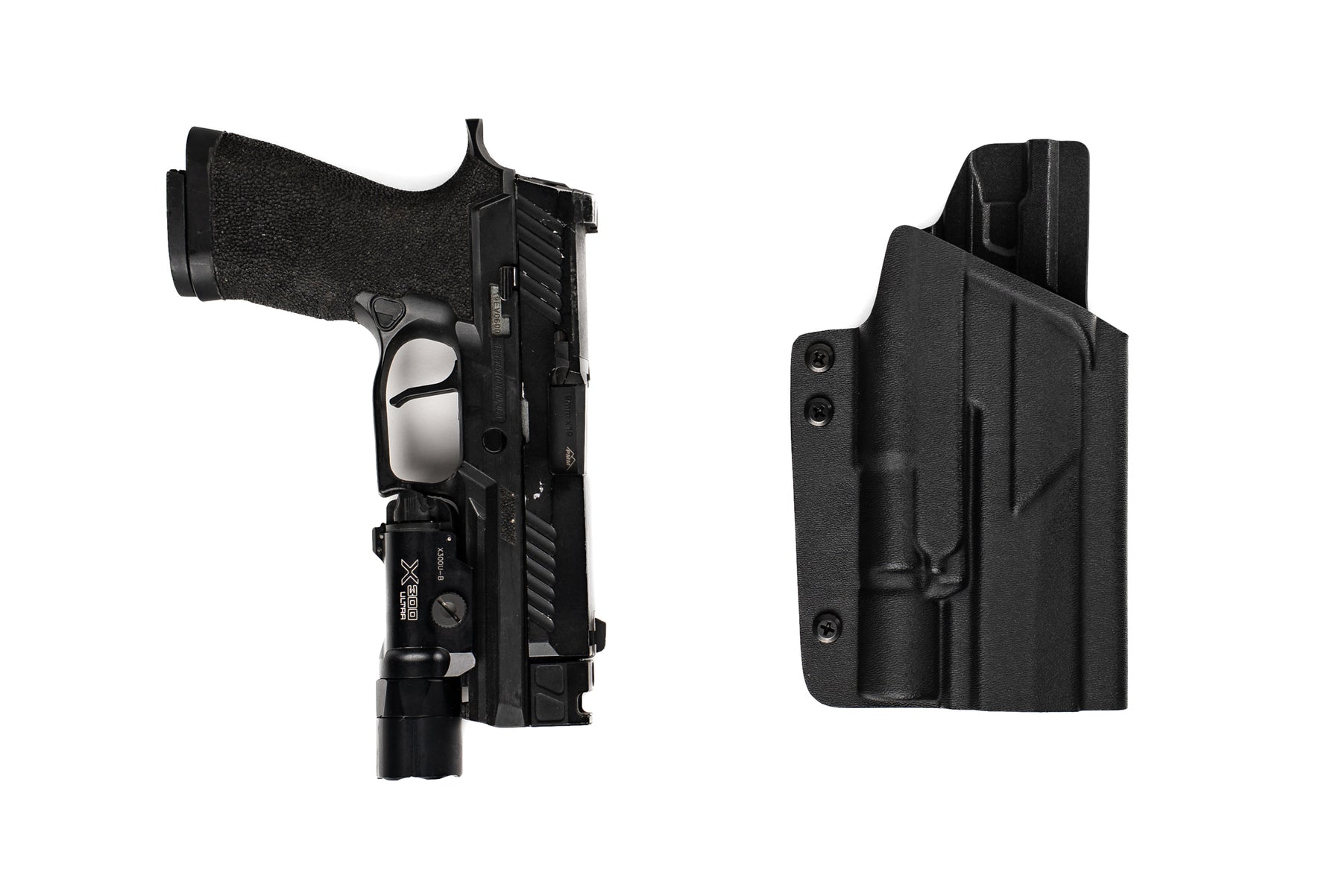 Our light bearing holster features all the same great features mentioned above, but now with the added light selections we have above.  The light selections that are available are the only ones we currently sell, with the plan to add more as time continues and our company grows. The selected light in the above menu are molded to their 'Real Steel' counterpart and will ONLY fit that light - it cannot be used with a different light. Repro lights of the same style still fit.