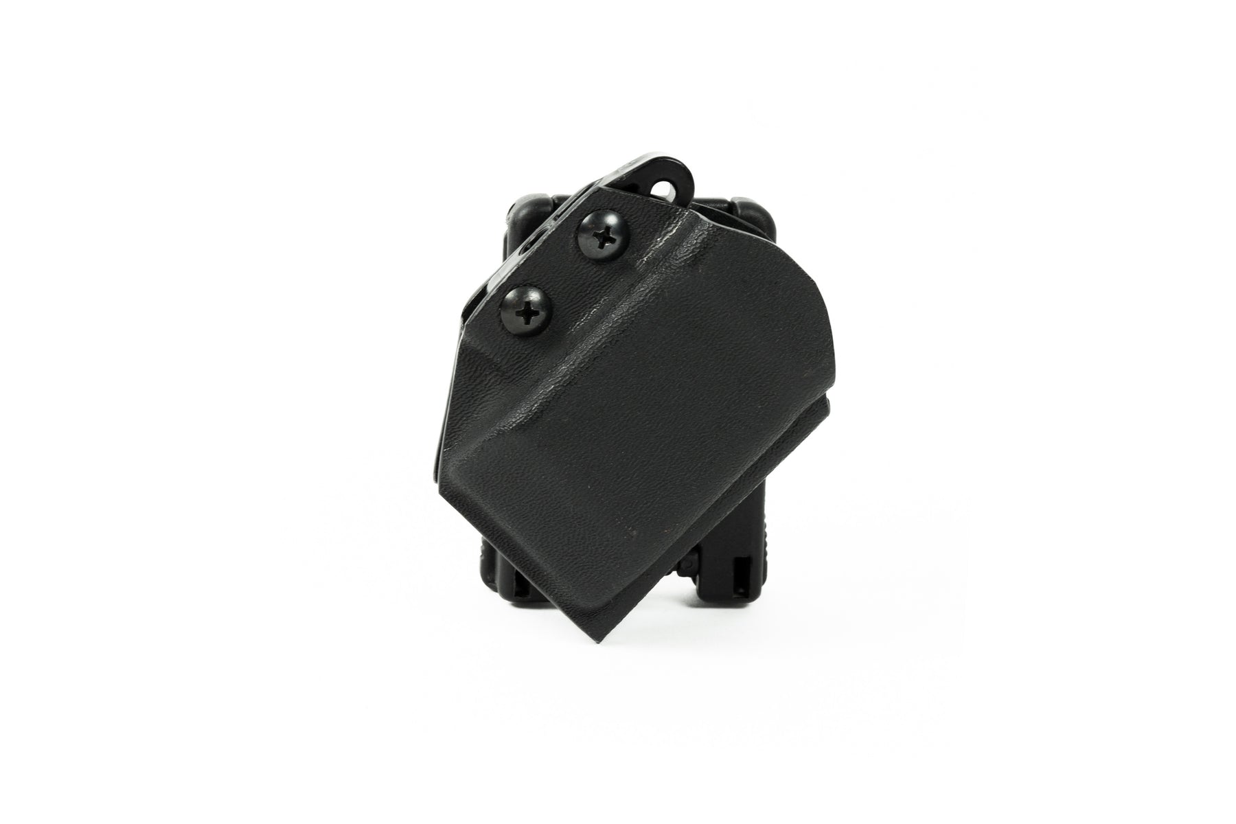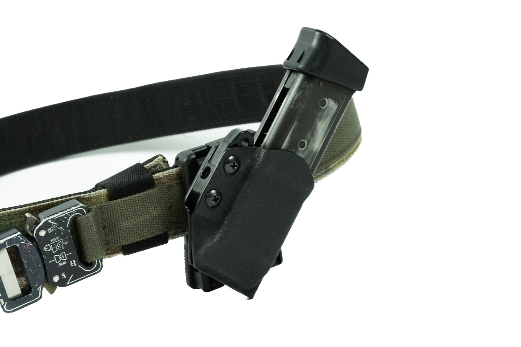 Our Collective Kydex Competition Magazine carrier has a smaller profile than its predecessor, along with the ability to be run at a 90, 75, and 45 degree angle.